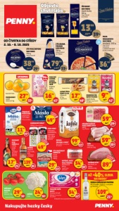 5 Nabídka platná od čtvrtka 2. 10. do středy 8. 10. 2025 < Nejnižší cena za posledních 30 dní • Destičky s keramickým povrchem • Rychlé zahřátí, rozsah 150– 230 °C • Digitální LED displej • Napájecí kabel otočný o 360° • Rozměry: cca 70 × 140 cm • 100% bavlna, 450 g/m2 • 4 barevné varianty Žehlička na vlasy Sleva 40 % Cena s 10 body 299, 90 Plná cena 499,90 Kč Funkce automatického vypnutí a uzamčení Nová výbava do vaší koupelny Sleva je poskytována za body za nákupy v prodejnách Penny Market. Body za své nákupy můžete získat a uplatnit do 5. 11. 2025. Akce platí do vyprodání a vydání zásob v jednotlivých prodejnách Penny Market. Fotografie jsou pouze ilustrativní. Podrobná pravidla na www.penny.cz. • Rozměry: cca 67 × 24 cm • 100% bavlna • S praktickým knoflíkem na uchycení • 4 barevné varianty Sleva 34 % Cena s 10 body 149, 90 Plná cena 229,90 Kč Bavlněná osuška • Rozměry: cca 50 × 80 cm • Vrchní strana: 100% polyester, vnitřní část: PU pěna, spodní strana: PVC s protiskluzovou ochranou • 4 barevné varianty Sleva 50 % Koupelnová předložka Cena s 10 body 99, 90 Plná cena 199,90 Kč Sleva 30 % Cena s 10 body 69, 90 Plná cena 99,90 Kč Turban na vlasy Dostupná barevnost textilních výrobků: 11,90 19,90/ 40% 27,90 54,90/ 49% 11,90 23,90/ 50% 119,90 149,90/ 20% 249,90 449,90/ 44% SUPER CENA 84,90 Qjed 57,90 Qjed 179,90 179,90 299,90/ 40% Qjed 42,90 Qjed 44,90 79,90 118,90/ 32% 39,90 69,90/ 42% Qjed 199,90 89,90 179,90/ 50% 99,90 149,90/ 33% KUBÍK WATERRR jahoda, zelené jablko | 0,5 l 1 l 23,80 Kč < 11,90 Kč v nabídce také Kubík 100% jablko 300 ml za 13,90 Kč TRADIČNÍ OPLATKY KOLONÁDA OPAVIA různé druhy 140/92 g 100 g 19,93/30,33 Kč < 27,90 Kč TYČINKA 3BIT 46 g 100 g 25,87 Kč < 11,90 Kč v nabídce také Leo 33,3 g za 12,90 Kč HOLICÍ STROJEK SENSOR3+ GILLETTE + 4 NÁHRADNÍ HLAVICE 1 balení < 119,90 Kč KÁVA JIHLAVANKA STANDARD mletá | 1 kg < 259,90 Kč VLOŽKY ALWAYS ULTRA SUPER PLUS 16 ks | 1 ks 5,31 Kč < 89,90 Kč | v nabídce také další druhy od 39,90 Kč KLOBÁSA UHERSKÁ, GURMÁN KMOTR* 180 g 100 g 32,17 Kč GEL NA PRANÍ WOOLITE* různé druhy 3,6 l 1 l 49,97 Kč < 179,90 Kč TABLETY DO MYČKY AIO EXTRA LEMON SOMAT 44 ks 1 ks 4,09 Kč < 179,90 Kč LOVECKÝ SALÁM* 240 g 100 g 17,88 Kč DEO SPREJ GARDENIA FA* 150 ml 100 ml 29,93 Kč v limitované nabídce také Sprchový gel Gardenia 400 ml za 49,90 Kč ZUBNÍ PASTA ELMEX různé druhy | 75 ml 100 ml 106,53 Kč | < 118,90 Kč ZUBNÍ PASTA TRIPLE ACTION COLGATE 125 ml | 100 ml 31,92 Kč | < 39,90 Kč KAPSIČKY PRO KOČKY, PSY PROPESKO* 40x 100 g | 1 kg 49,98 Kč < 199,90 Kč PRÁŠEK 4V1 CALGON 500 g 1 kg 179,80 Kč < 89,90 Kč ČAJ TEEKANNE Earl grey 165 g 100 g 60,55 Kč < 99,90 Kč 4 body navíc 1 ks = 2 body navíc 1 ks = 2 body navíc 1 ks = 1 bod navíc 1 ks = 1 bod navíc 1 ks = 1 bod navíc 1 ks = 1 bod navíc 1 ks = 1 bod navíc 1 ks = 1 bod navíc 1 ks = 5 bodů navíc 1 ks = 1 kg 8 bodů navíc 1 ks = 1 bod navíc 1 ks = 6 bodů navíc 1 ks = 6 bodů navíc 1 ks = 60 1 = 3 Kč 44 1 = 4,09 Kč 40 ks 2 body navíc 1 ks = 3 body navíc 1 ks = 10 1 = 8,99 Kč Za nákup výrobků z této strany získáte body navíc! 10 bodů = 57% slevy Za nákup výrobků z této strany získáte body navíc.