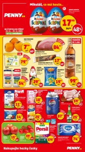 Nakupujte hezky česky < Nejnižší cena za posledních 30 dní 17,90 34,90/ 48% Qjed 79,90 14,90 24,90/ 40% 59,90 89,90/ 33% 17,90 29,90/ 40% 7,90 19,90/ 60% 11,90 22,90/ 48% Qjed 54,90 29,90 **59,90/ 50% Qjed 87,60 25,90 31,90/ 18% 99,90 188,90/ 47% 18,90 29,90/ 36% Qjed 84,90 Qjed 379,90 Qjed 74,90 15,90 39,90/ 60% 19,90 27,90/ 28% 39,90 69,90/ 42% 25,90 48,90/ 47% ilustrační foto FLORA* 1 kg | < 99,90 Kč MOZZARELLA BONI 220/125 g 100 g 11,92 Kč KUŘE chlazené | cena za 1 kg LISTOVÉ TĚSTO PENNY TO GO chlazené | 275 g | 100 g 6,51 Kč ilustrační foto TRVANLIVÉ MLÉKO BONI polotučné, 1,5 % tuku 1 l | < 11,90 Kč MAJONÉZA, TATARSKÁ OMÁČKA HELLMANN’S* 500 ml 1 l 109,80 Kč KINDER SURPRISE 20 g | 100 g 89,50 Kč < 34,90 Kč www.penny.cz/koule PEPSI 4 PACK* 4x 2,25 l 1 l 9,73 Kč PILSNER URQUELL světlý ležák | 0,5 l 1 l 51,80 Kč | < 25,90 Kč záloha na lahev 3 Kč BOŽKOV tradiční 35 % alk. 0,5 l 1 l 199,80 Kč < 119,90 Kč KLADENSKÁ PEČENĚ ŘEZNÍKŮV TALÍŘ krájená 100 g VEPŘOVÁ KÝTA* bez kosti, ve vakuu cena za 1 kg PRACÍ PRÁŠEK, GEL PERSIL* 4,4 kg, 3,96 l 1 kg 86,34 Kč 1 l 95,93 Kč < 379,90 Kč TOALETNÍ PAPÍR WIPPY* různé druhy | 3vrstvý 16 rolí | 264 m | 1 m 0,28 Kč < 74,90 Kč BRAMBŮRKY SOLTY různé druhy 150 g 100 g 13,27 Kč < 21,90 Kč Mikuláš, co má koule.. FIGURKA SANTA CLAUS CHOCO’LA* 110 g 100 g 27,18 Kč < 44,90 Kč KAKI PERSIMON cena za 1 ks JABLKA ČERVENÁ volná cena za 1 kg KEŘÍKOVÁ RAJČATA volná cena za 1 kg TAVENÝ SÝR PRÉSIDENT různé druhy 150 g 100 g 17,27 Kč < 24,90 Kč OD ČTVRTKA DO STŘEDY 13. 11. – 19. 11. 2025 17. 11. OTEVŘENO ks 12 MAX. osoba/nákup/ den 5MAX. ks osoba/nákup/ den 21,90 Kč CENA ZA 1 KS PŘI KOUPI BALENÍ 90% masa 80 1 = 4,75 Kč 16 3 12 bodů navíc 1 ks = TRADIČNÍ 35 % ALK. 1 KG 500 ML PLATNOST 13. 11. – 16. 11. 4X 2,25 L