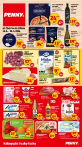 Nakupujte hezky česky < Nejnižší cena za posledních 30 dní 59,90 89,90/ 33% 9,90 21,90/ 54% 37,90 69,90/ 45% 29,90 49,90/ 40% 10,90 19,90/ 45% 17,90 29,90/ 40% 9,90 17,90/ 44% 24,90 39,90/ 37% 5,90 13,50/ 56% 229,90 449,90/ 48% 99,60 **169,90/ 41% 14,90 19,90/ 25% Qjed 84,90 39,90 69,90/ 42% Qjed 219,90 38,90 54,90/ 29% 13,90 22,90/ 39% Qjed 34,90 129,90 189,90/ 31% 59,90 99,90/ 40% Qjed 24,90 28,90 49,90/ 42% 29,90 49,90/ 40% ilustrační foto KUŘE chlazené | cena za 1 kg ilustrační foto TRVANLIVÉ MLÉKO BONI polotučné, 1,5 % tuku 1 l < 9,90 Kč LISTOVÉ TĚSTO PENNY TO GO chlazené | 275 g 100 g 6,51 Kč TAVENÝ SÝR APETITO smetanový, se šunkou 150/140 g 100 g 19,93/21,36 Kč < 32,90 Kč JOGURT FLORIAN různé druhy 150 g 100 g 6,60 Kč TĚSTOVINY SAN FABIO různé druhy 500 g 1 kg 27,80 Kč < 17,90 Kč BRUMÍK OPAVIA různé druhy 30 g 100 g 19,67 Kč < 7,90 Kč KOFOLA ORIGINAL 4 PACK* 4x 2,25 l 1 l 11,07 Kč WHISKY GRANT’S, GRANT’S SUMMER ORANGE 40/35 % alk. 0,7 l | 1 l 328,43 Kč < 259,90 Kč ZAUZENÝ ŠUNKOVÝ SALÁM ŘEZNÍKŮV TALÍŘ 100 g VEPŘOVÁ PLEC* bez kosti, balená ve vakuu | cena za 1 kg PROSECCO bílé perlivé 0,75 l | 1 l 79,87 Kč < 64,90 Kč TOALETNÍ PAPÍR TENTO FAMILY 3 vrstvý | 8 rolí | 112,32 m 1 m 0,36 Kč | < 39,90 Kč OLIVOVÝ OLEJ SAN FABIO extra panenský 0,75 l 1 l 173,20 Kč < 129,90 Kč více na stranách 12–15 SÝR MASCARPONE SAN FABIO 250 g | 100 g 15,56 Kč MÁSLO 82% MILKERIA* 250 g | 100 g 9,96 Kč PIZZA MARGHERITA SAN FABIO mražená | 300 g 1 kg 83 Kč | < 36,90 Kč v nabídce také další druhy za 39,90 Kč KAPSIČKY PRO KOČKY, PSY PROPESKO* různé druhy | 48x 100 g 1 kg 45,81 Kč SVIJANSKÝ MÁZ světlý ležák 0,5 l 1 l 21,80 Kč < 10,90 Kč záloha na lahev 3 Kč HROZNY RŮŽOVÉ/TMAVÉ BEZSEMENNÉ 500 g | 1 kg 75,80 Kč MANDARINKY volné cena za 1 kg KAPIE ČERVENÁ balená | 500 g 1 kg 59,80 Kč ilustrační foto MINIDORTÍK SAN FABIO* různé druhy 10x 28/30 g 1 kg 124,64/116,33 Kč OD ČTVRTKA DO STŘEDY 15. 1. – 21. 1. 2026 ks 12 MAX. osoba/nákup/ den 24,90 Kč CENA ZA 1 KS PŘI KOUPI BALENÍ 0,7 l 4x 2,25 l 90% masa 8 3 48 ks 1 ks 4,58 Kč ODRŮDA MURCOTT LEHCE LOUPATELNÉ