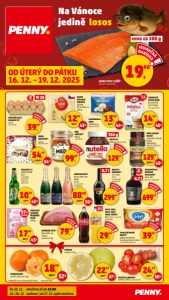 , 7 Nabídka platná od úterý 16. 12. do pátku 19. 12. 2025 < Nejnižší cena za posledních 30 dní 24,90 62,90/ ** 60% 10,90 14,90/ 26% 19,90 42,90/ 53% 19,90 33,90/ 41% 44,90 **99,90/ 55% 39,90 69,90/ 42% 69,90 **119,90/ 41% Qjed 269,90 13,90 18,90/ 26% 54,90 79,90/ 31% Qjed 89,90 Qjed 159,90 24,90 39,90/ 37% 17,90 28,90/ 38% 49,90 69,90/ 28% 79,90 **159,90/ 50% 29,90 67,90/ 55% 18,90 23,90/ 20% HOŘČICE KARLOVA KORUNA kremžská, plnotučná 400 g 1 kg 27,25 Kč < 10,90 Kč VEPŘOVÉ MASO VE VLASTNÍ ŠŤÁVĚ 85 % masa 400 g | 1 kg 99,75 Kč < 69,90 Kč CHODUROVA SVÁTEČNÍ ŠUNKA* cena za 1 kg KLATOVSKÉ KUŘECÍ PÁRKY 800 g | 100 g 6,86 Kč PAŠTIKOVÉ MINIDORTY* různé druhy 300 g 100 g 29,97 Kč ŠUNKA ZLATÁ RYBKA PRO ŠTĚSTÍ* 600 g 100 g 26,65 Kč SCHWARZWALDSKÁ ŠUNKA krájená, 100 g vyrobeno ze 128 g masa 100 g PIVNÍ SALÁM krájený 100 g TUŇÁK VE VLASTNÍ ŠŤÁVĚ* 224 g 1 kg 356,70 Kč ŠUNKA VEPŘOVÁ DELIKÁTNÍ 85 % MASA VESEKO 300 g | 1 kg 166,33 Kč < 49,90 Kč KEČUP HEINZ* 1 kg < 69,90 Kč FAZOLE PENNY bílá 400/240 g 1 kg 57,92 Kč < 13,90 Kč v nabídce také další druhy za 14,90 Kč POLÉVKA VITANA různé druhy 78–97 g 1 kg 255,13– 205,15 Kč < 21,90 Kč MAJONÉZA, TATARSKÁ OMÁČKA HELLMANN’S* 405 ml 1 l 110,86 Kč SMĚS DO BRAMBOROVÉHO SALÁTU GUSTITO 330/175 g 1 kg 113,71 Kč < 33,90 Kč OKURKY MACHLAND 5–8 cm 540/300 g 1 kg 83 Kč < 24,90 Kč TUŇÁKOVÝ SALÁT GIANA různé druhy 185 g 1 kg 161,62 Kč < 32,90 Kč KUKUŘICE STERILOVANÁ PENNY 330/285 g 1 kg 66,32 Kč < 19,90 Kč 400 g 1 kg Nabídka platná od úterý 16. 12. do pátku 19. 12. 2025