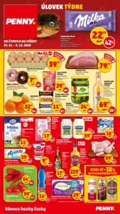 NOVÁ TITULKA Vánoce hezky česky PRO TYTO PRODEJNY JE NABÍDKA Z KAPACITNÍCH A JINÝCH LOGISTICKÝCH DŮVODŮ OMEZENA: BEROUN TŘÍDA MÍRU; HAVLÍČKŮV BROD UL. U CIHLÁŘE; HLUČÍN UL. CIHELNÍ; HUMPOLEC UL. LUŽICKÁ; KLADNO UL. MILADY HORÁKOVÉ; KOLÍN UL. BENEŠOVA; KRALUPY NAD VLTAVOU UL. CHMELOVA; LITVÍNOV UL. JIRÁSKOVA, U BÍLÉHO SLOUPU; LOUNY UL. PŘEMYSLOVCŮ; LYSÁ NAD LABEM UL. SOKOLSKÁ; MOST UL. MOSKEVSKÁ; MILEVSKO UL. DAROVANÁ; OLOMOUC UL. WOLKEROVA; OSTRAVA UL. HLADNOVSKÁ; OSTROV UL. KRUŠNOHORSKÁ; PRAHA UL. DĚLNICKÁ, JABLONECKÁ, LODŽSKÁ, MATÚŠKOVA, MUKAŘOVSKÉHO, NA PANKRÁCI, NUSELSKÝ PIVOVAR, UL. VRTBOVA, PODĚBRADSKÁ, ŠTEFÁNIKOVA, TERRONSKÁ, VINOHRADSKÁ, VRŠOVICKÁ; ŘEVNICE UL. KOMENSKÉHO; SEMILY UL. LUČNÍ; SOKOLOV UL. ZÁVODU MÍRU; TOUŽIM UL. PLZEŇSKÁ; SLANÝ UL. OUVALOVA. NABÍDKA NEPLATÍ PRO KRÁLŮV DVŮR U BEROUNA, UL. ALEXANDRA HESSE. Chyby v tisku vyhrazeny. Ceny uvedené v letáku jsou v Kč. Ceny jsou bez dekorace. Škrtaná cena je běžná prodejní cena. Mohou být použity ilustrační fotografie. Vyhrazujeme si právo změn v balení a variantě nabízeného zboží. Pokud v důsledku nečekaně vysoké poptávky dojde k nedostatku určitého zboží, omlouváme se Vám a děkujeme za pochopení. Odběr zboží z letáku je možný jen v obvyklém množství, maximálně 2 kartony na osobu na den, není-li uvedeno jinak. *Takto označené produkty nenáleží do stálého sortimentu, mohou být tedy dodány na příslušné prodejny v menším množství, a z toho důvodu jedinečná nabídka na toto zboží platí pouze první den uvedeného období akce. Tento dokument není nabídkou (návrhem na uzavření smlouvy) ani výzvou k podávání nabídek. Jde o dokument určený pouze k marketingovým a propagačním účelům. Vzhledem k faktu, že společnost Penny Market s. r. o. pravidelně provádí kontrolu na přítomnost reziduí používaných chemických látek při pěstování ovoce a zeleniny, shledává občanské sdružení Zdravá potravina, z. s., (Fér potravina) tyto produkty jako nezávadné. ***Sleva je poskytována za body za nákupy v prodejnách Penny Market. Body za své nákupy můžete získat a uplatnit do 7. 1. 2026. Akce platí do vyprodání a vydání zásob v jednotlivých prodejnách Penny Market. Fotografie jsou pouze ilustrativní. Podrobná pravidla na www.penny.cz. **Výrobcem doporučená cena. Přijímáme: 3. 12. ST 17,90 27,90/ 35% Qjed 89,90 29,90 47,90/ 37% 22,90 34,90/ 34% 59,90 89,90/ 33% 99,90 144,90/ 31% 10,90 19,90/ 45% 12,90 22,90/ 43% SUPER CENA 49,90 19,90 49,90/ 60% TRVANLIVÉ PLNOTUČNÉ MLÉKO MADETA plnotučné 3,5% 1 l | < 27,90 Kč ŘEPKOVÝ OLEJ PENNY 1 l MANDARINKY kazeta | 2,3 kg 1 kg 21,70 Kč TOALETNÍ PAPÍR HEŘMÁNEK WIPPY 3vrstvý | 4 role 78,84 m | 1 m 0,29 Kč < 22,90 Kč TUZEMÁK KRÁLOVSKÁ PALÍRNA 37,5 % alk. 0,5 l 1 l 199,80 Kč < 99,90 Kč SVIJANSKÝ MÁZ světlý ležák 0,5 l 1 l 21,80 Kč < 10,90 Kč záloha na lahev 3 Kč KACHNA CHLAZENÁ BEZ DROBŮ* cena za 1 kg KUŘECÍ STEAK MLETÝ POLOTOVAR 500 g | 1 kg 119,80 Kč Úlovek za super cenu EIDAM KARLOVA KORUNA plátky | 30 % tuku v s. | 100 g BORŮVKY balené | 125 g 1 kg 159,20 Kč ks 12 MAX. osoba/nákup/ den 5MAX. ks osoba/nákup/ den 4 3MAX. BALENÍ osoba/nákup/ den KLEMENTINKY 2,3 kg STŘEDA SUPER Nabídka platí ve středu 3. 12. 2025 OD PONDĚLÍ DO STŘEDY Nabídka platí od pondělí 1. 12. do středy 3. 12. 2025 1. 12. PO 2. 12. ÚT 3. 12. ST